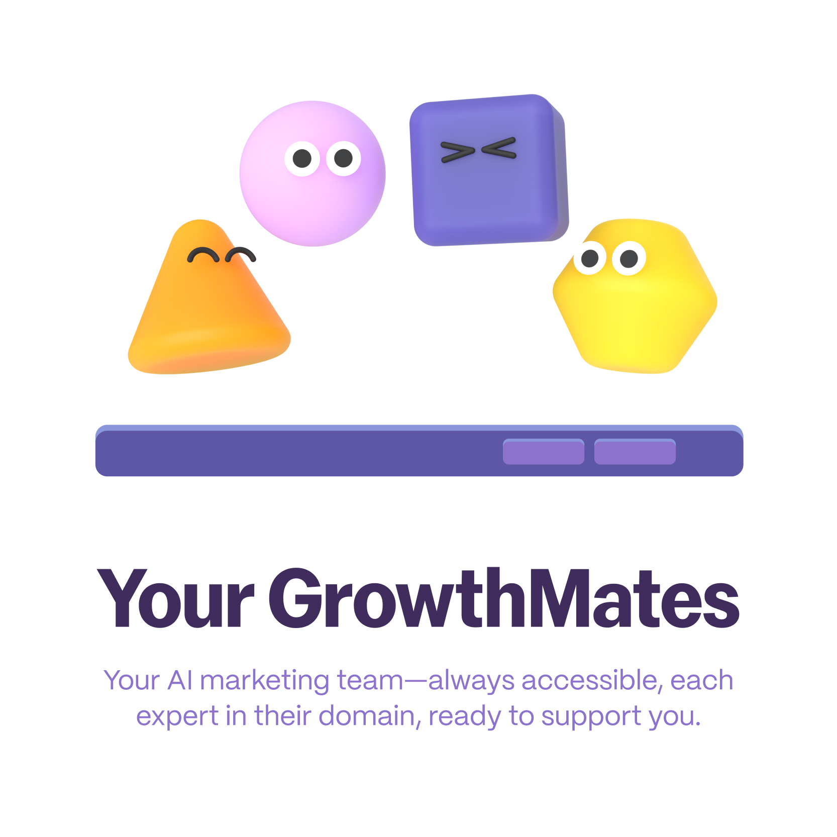 Designed to feel supportive and engaged, Growth Mates have playful personalities that bring energy to the experience without feeling fully human. They strike the perfect balance between approachability and professionalism, making complex AI capabilities feel accessible.